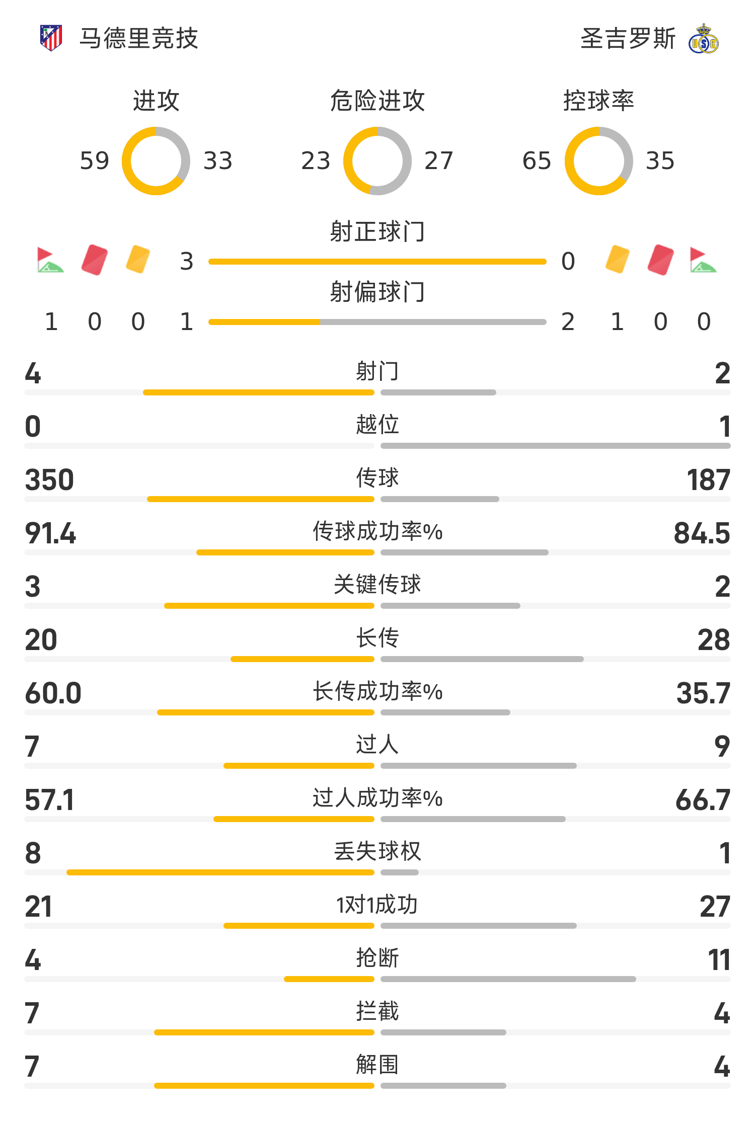 39’阿尔瓦雷斯门前接应西蒙尼横传抽射破门,马竞1-0圣吉罗斯