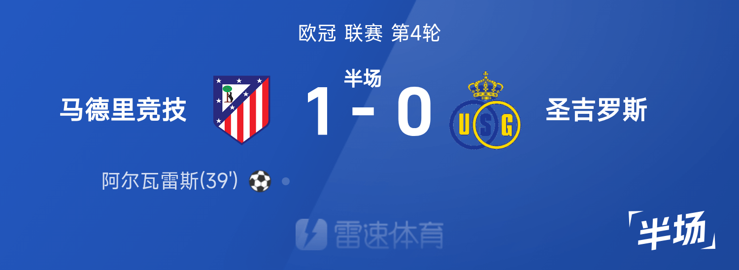 雷速体育11月5日讯 25-26赛季欧冠联赛阶段第4轮,马德里竞技坐镇主场迎战圣吉罗斯。此役上半场,阿尔瓦雷斯前插到门前接应西蒙尼横传起脚抽射破门,格列兹曼进球被吹,马德里竞技在半场结束时以1-0领先。