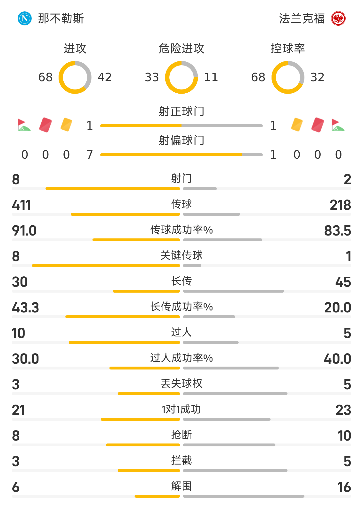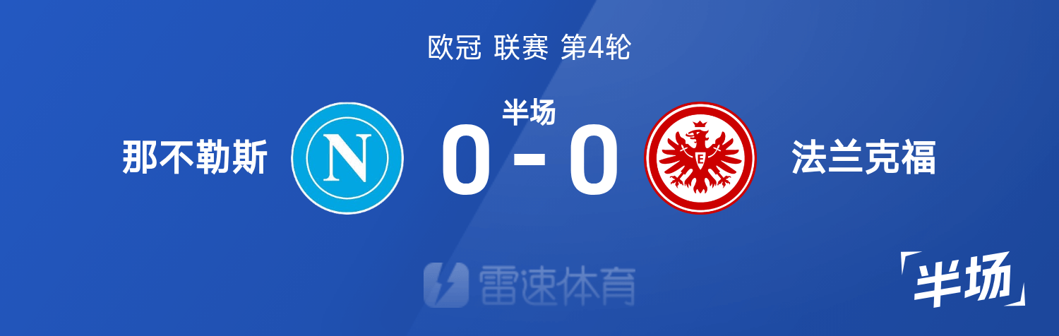 雷速体育11月05日讯 25/26赛季欧冠联赛第4轮,那不勒斯迎战法兰克福。半场战罢,双方比分暂为那不勒斯0-0法兰克福。