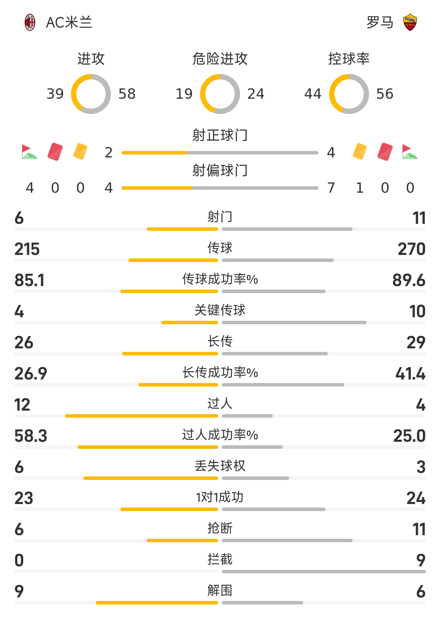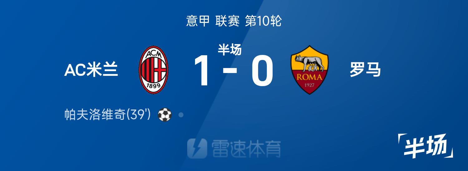 雷速体育11月03日讯 25/26赛季意甲联赛第10轮,AC米兰迎战罗马。半场战罢,双方比分暂为AC米兰1-0罗马,帕夫洛维奇破门建功。