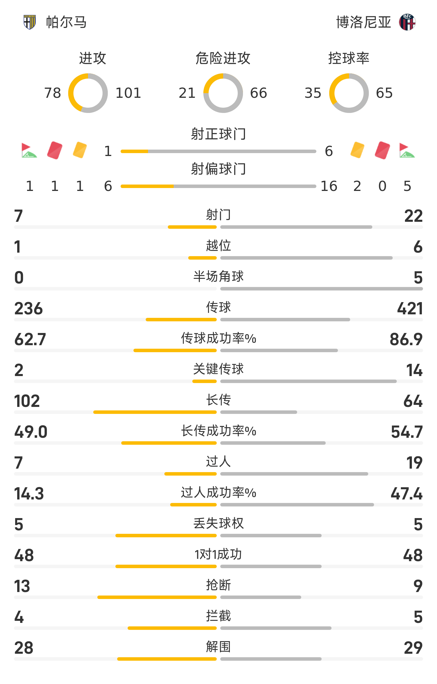 博洛尼亚首发阵容:1-斯科鲁普斯基、26-卢库米、33-米兰达、14-赫格姆、2-霍尔姆、8-弗罗伊勒(56’6-莫罗)、7-奥尔索利尼(82’10-贝尔纳代斯基)、21-厄德高(72’80-法比安)、4-波贝加、11-罗(82’28-坎比亚吉)、9-卡斯特罗(72’24-达林加)