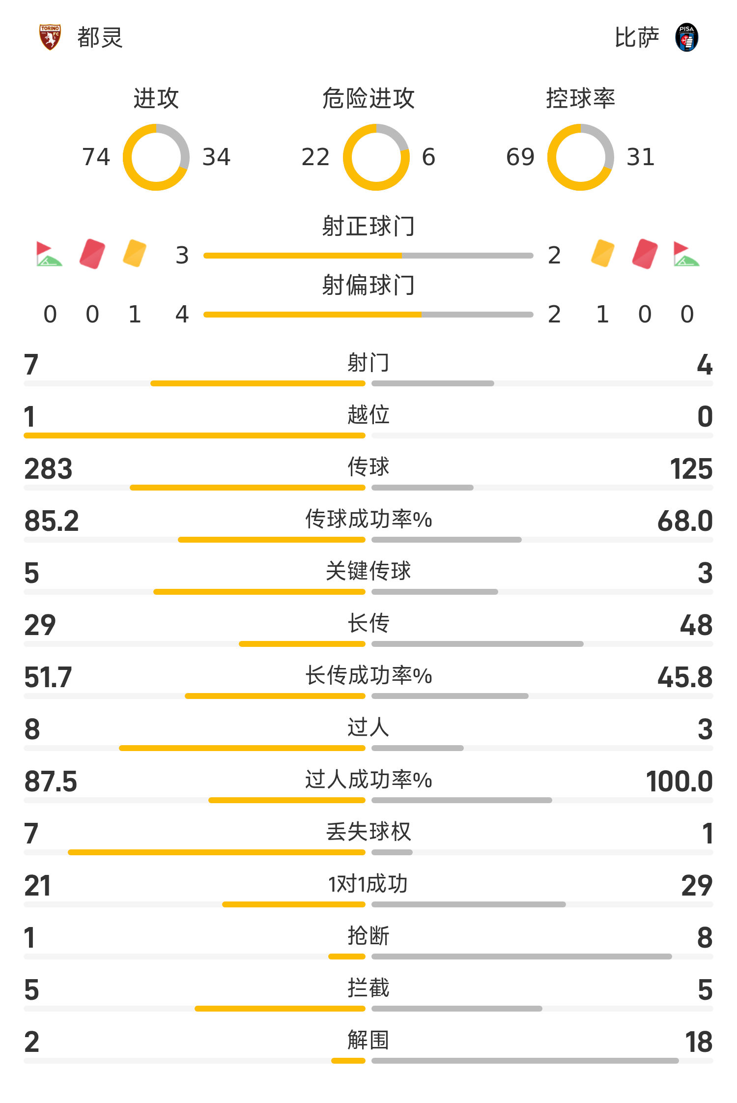 29’卡萨迪送点,莫雷诺点射破门梅开二度,比萨2-0都灵