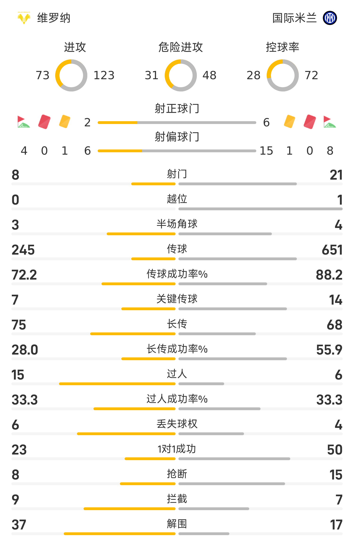 40’奥尔班分球,吉奥万抽射破门,维罗纳1-1国际米兰