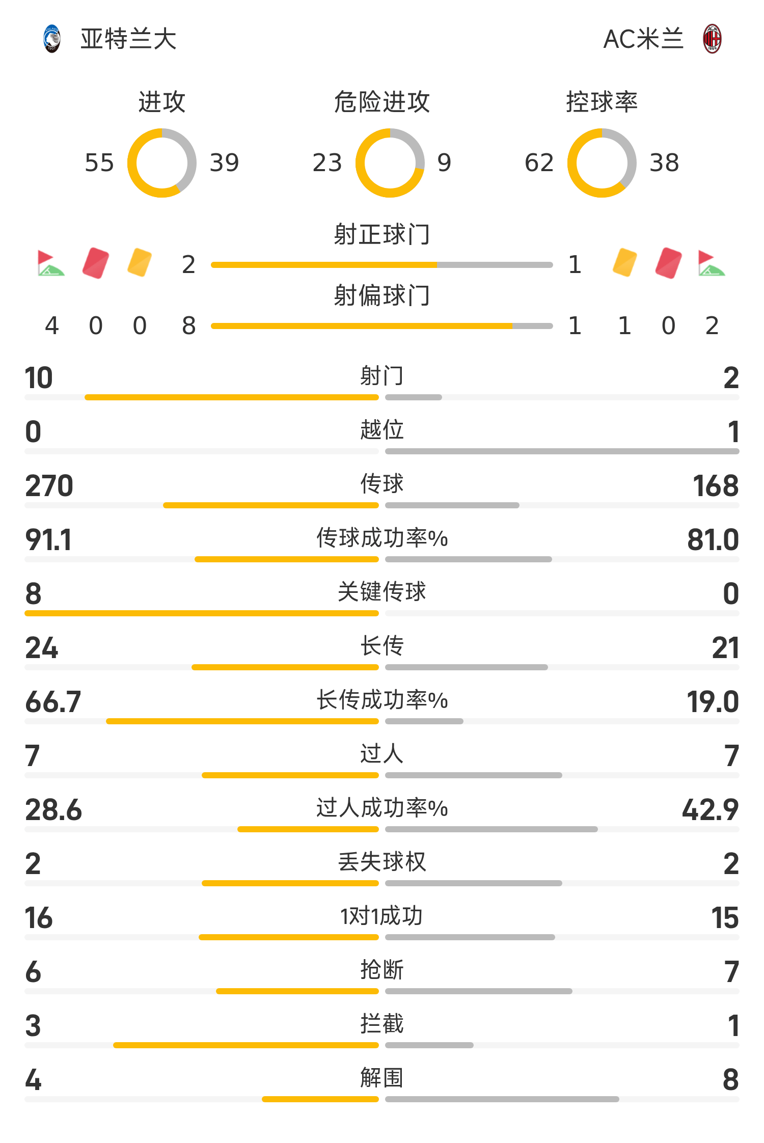 亚特兰大首发阵容:29-卡内塞基、4-希恩、3-克斯索诺、69-阿哈诺尔、15-德容恩(20’44-布雷西亚尼尼)、77-扎帕科斯塔、8-帕萨利奇、13-艾德森、47-贝纳斯科尼、11-卢克曼、17-德凯特拉雷